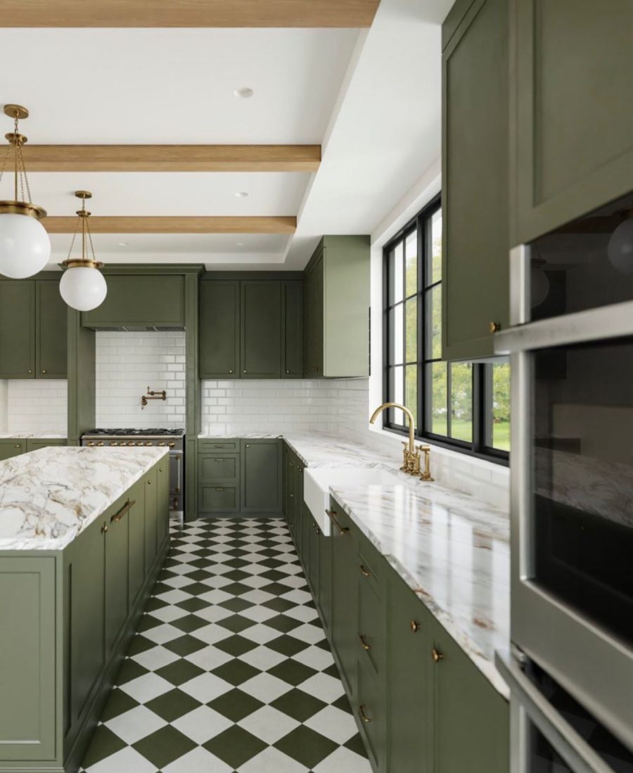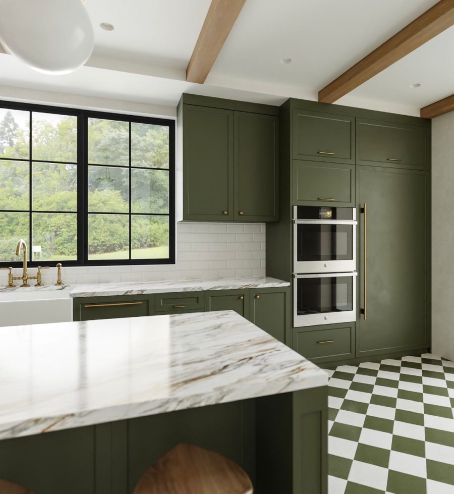 This kitchen blends classical design with modern appliances and a fresh, contemporary feel. The marble countertop adds elegance, while built-in fixtures create a seamless look. A large open window brings in natural light and offers a view of the trees, providing a rare country feel in the heart of the city.